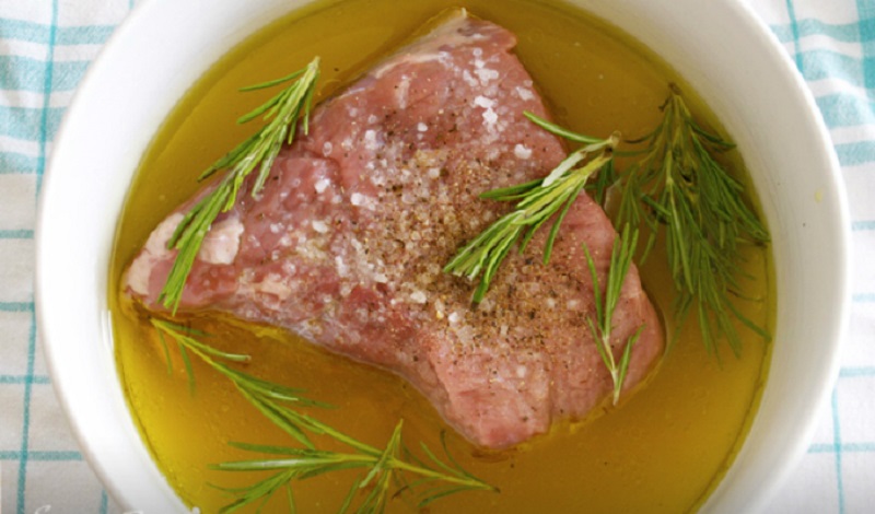 Trzy składniki płynne – ocet winny, wino oraz oliwę z oliwek wymieszaj w misce; do tego wszystkiego dodaj rozmaryn oraz pieprz.