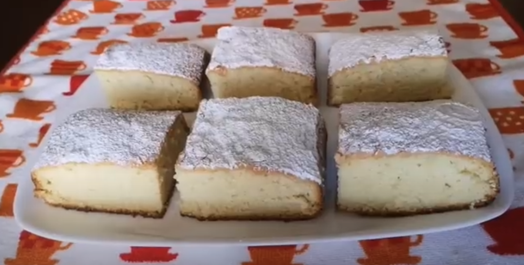 Wstaw ciasto do nagrzanego piekarnika i piecz w temperaturze 180°C przez około 30-35 minut lub do momentu, gdy patyczek wbity w środek ciasta wyjdzie suchy. Po upieczeniu wyjmij ciasto z piekarnika i pozostaw do ostygnięcia. Przed podaniem posyp ciasto szklanką cukru.