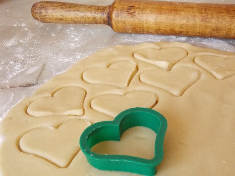 Po wyrobieniu, ciasto musi odchodzić od dłoni, w ten sposób wiadomo, że ma ono właściwą konsystencję. Rozwałkować je na kilka milimetrów i za pomocą foremek wycinać różne kształty.