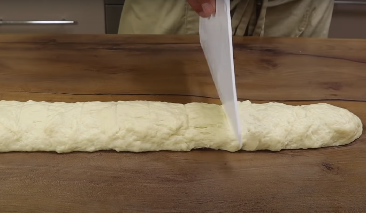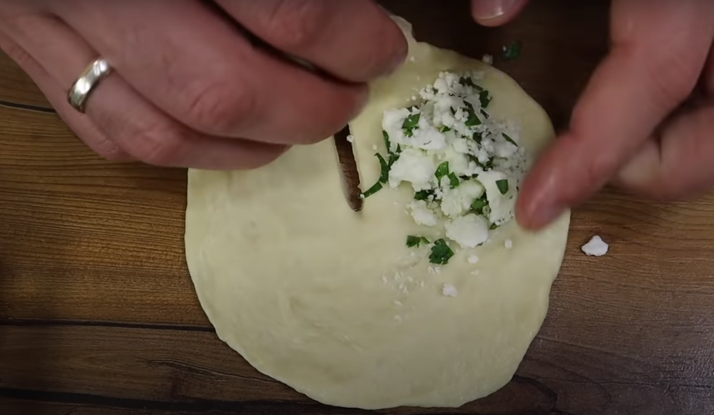 Po wyrośnięciu ciasta uformuj je w kulę, a następnie podziel na mniejsze kawałki. Z każdego kawałka uformuj naleśnik. Na każdy z nich nałożyć nadzienie i zwinąć w rulon.