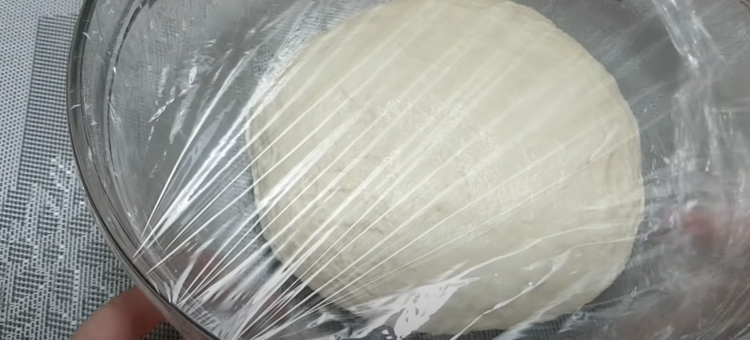 Wyrób ciasto w większej misce. Przełóż ciasto do przykrytej miski i przykryj folią. Pozostawić do wyrośnięcia na jakiś czas.