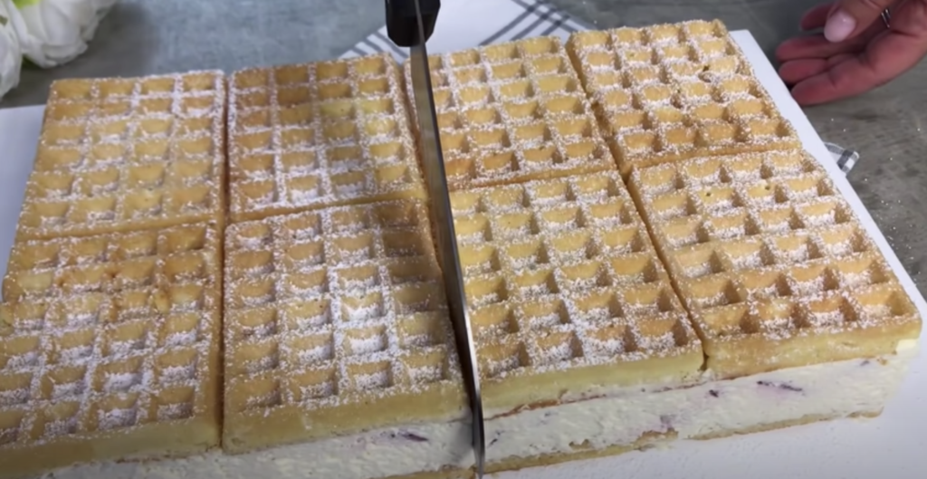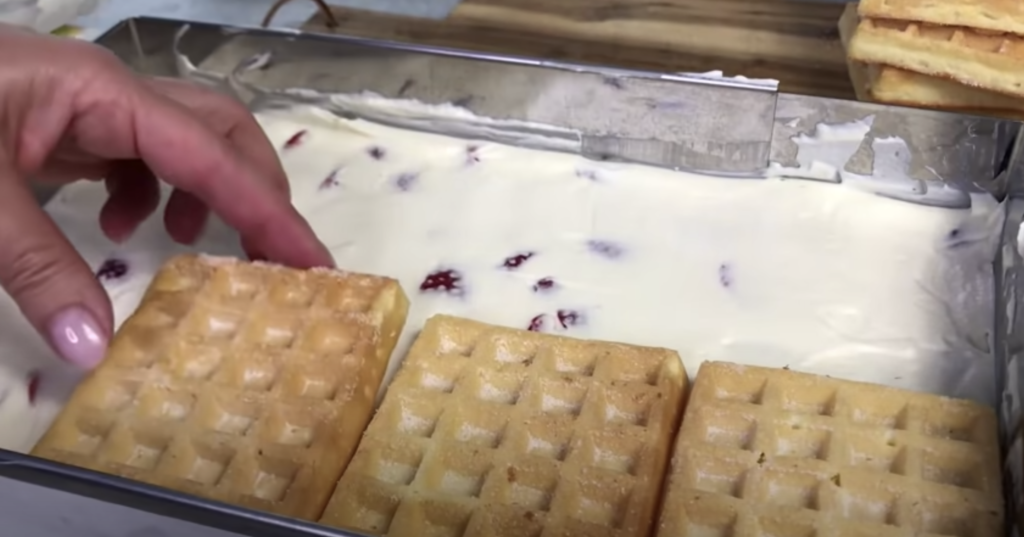 Umieść gofry w naczyniu do pieczenia i polej je kremem.