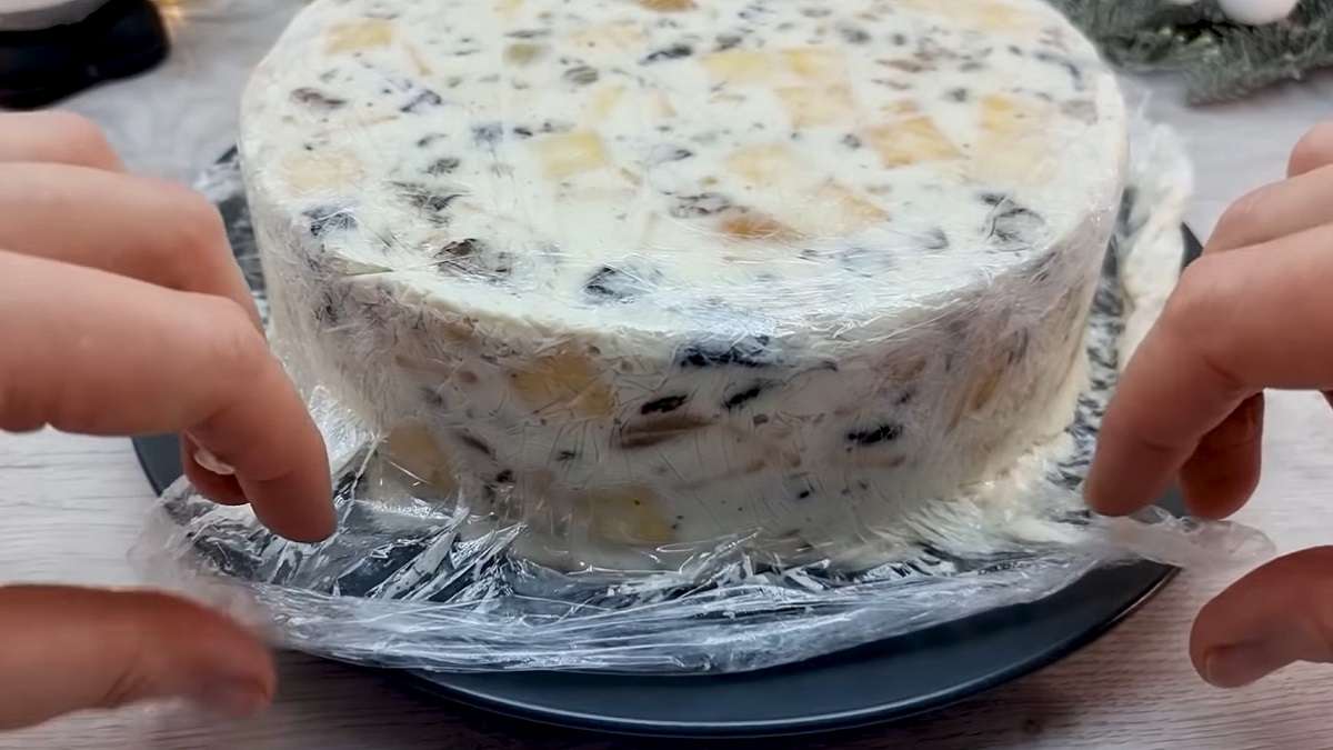 Przełóż masę do formy przykrytą folią spożywczą. Wstaw wszystko do lodówki na minimum 24 godziny. Po tym czasie przełóż całość na talerz i odkryj folię. Masa powinna być skondensowana i nie wylewać się nie na boki talerza.