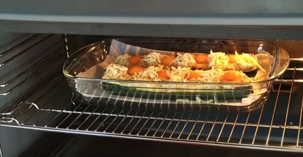 W innej patelni rozgrzej 1 łyżkę oliwy z oliwek. Dodaj plastry cukinii i smaż z obu stron, aż będą miękkie i lekko złociste. Dopraw solą, pieprzem i oregano. W naczyniu do zapiekania ułóż warstwę cukinii. Na wierzch cukinii dodaj warstwę kurczaka z cebulą. Posyp całość tartym parmezanem i mozzarellą.