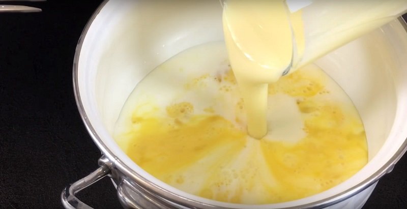 Postaw garnek na kuchence, włącz wolny ogień i powoli zagotuj mieszankę. Gdy krem się zagotuje, zdejmuj go z kuchenki i odstaw do ostygnięcia. Do osobnego, małego rondelka wrzuć wszystkie składniki potrzebne do przygotowania polewy. Całość wymieszaj, by uzyskać jednolitą masę bez żadnych grudek.