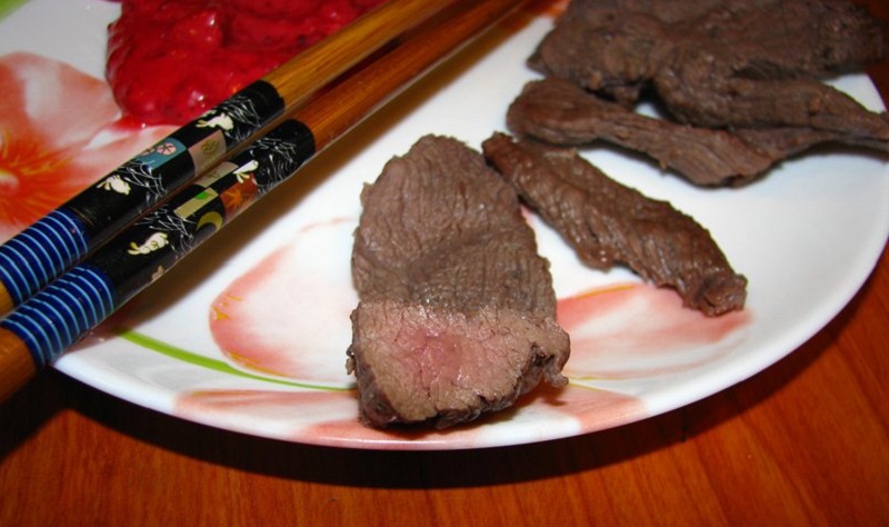 Obiad: porcja gotowanej wołowiny (200g), owoce na deser
