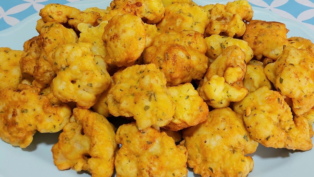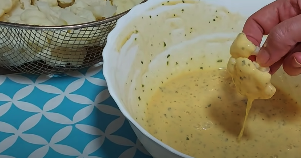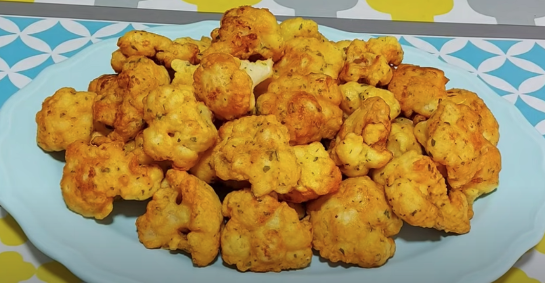 Rozgrzej olej roślinny na patelni na średnim ogniu. Każdą różyczkę kalafiora zanurz w cieście, a następnie smaż na rozgrzanym oleju. Smaż kalafiora z każdej strony, aż będzie złocisty i chrupiący. Odsącz na papierowym ręczniku, aby pozbyć się nadmiaru oleju. Przełóż usmażone różyczki kalafiora na talerz. Podawaj na ciepło z ulubionym sosem lub dipem.
