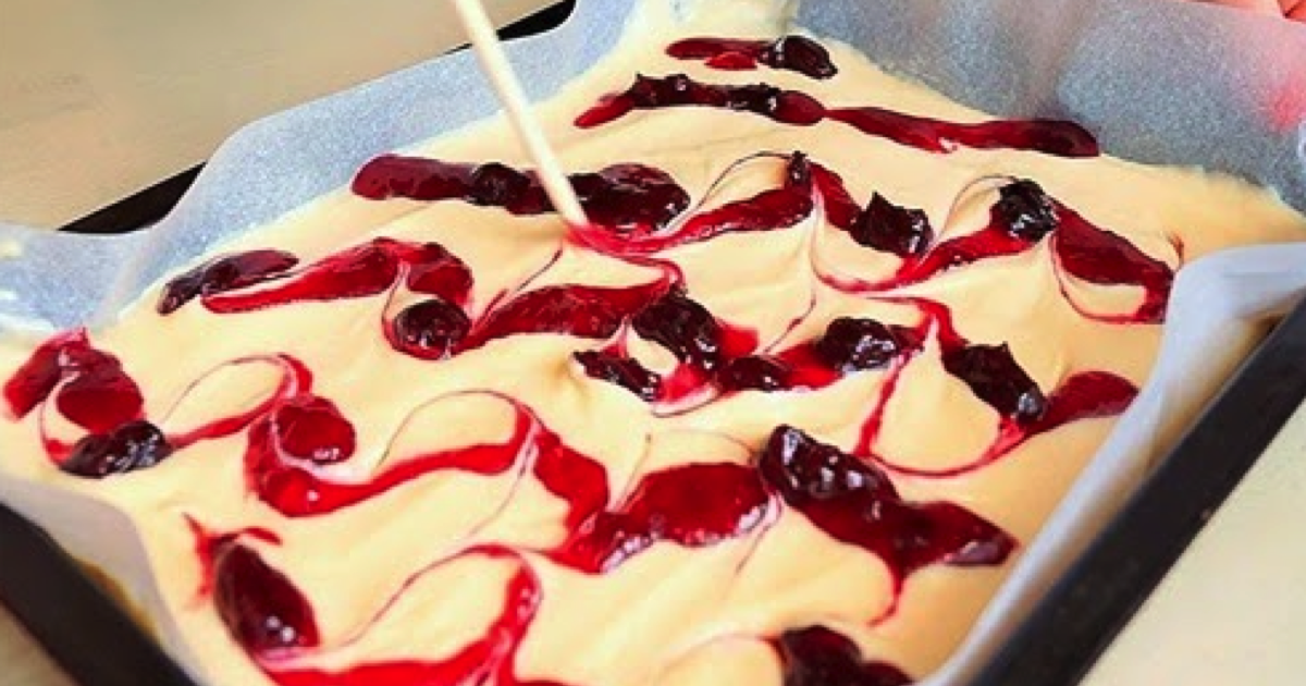 Do ciasta dodajemy konfiturę. Dżem rozprowadzamy za pomocą łyżki lub szpikulca.