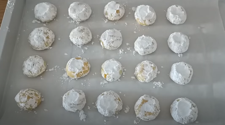 Odstaw ciasto na 5 minut, aby kasza napęczniała. Rozgrzej piekarnik do 200°C. Przełóż ciasto do formy wyłożonej papierem do pieczenia. Piecz przez 10-15 minut, aż ciasto się zarumieni i będzie dobrze upieczone w środku (sprawdź wykałaczką). Po upieczeniu i ostudzeniu posyp ciasto cukrem pudrem.
