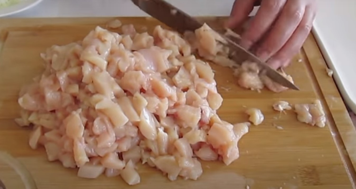 Blachę z cukinią piec przez 30 minut w piekarniku nagrzanym do 180 stopni. Posiekać cebulę, paprykę i czosnek. Pomidory pokroić na małe kawałki, myjąc je. Pokrój również pierś z kurczaka na małe kawałki.