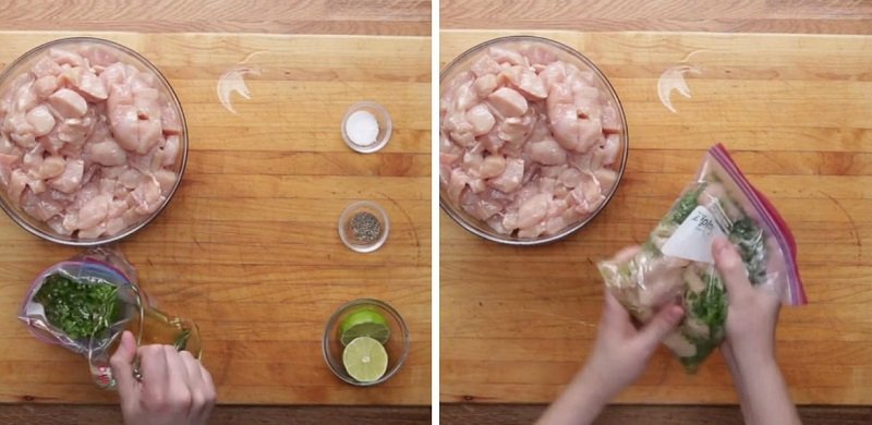 Szybkim pomysłem jest wcześniejsze kupienie mięsa, umycie go oraz posiekanie na drobne kawałki. Następnie należy je przełożyć do torebki z zamkiem przeznaczonej do żywności i do mrożenia posypując je ulubioną marynatą składającą się z dowolnych przypraw.