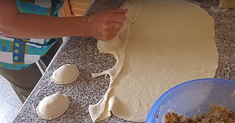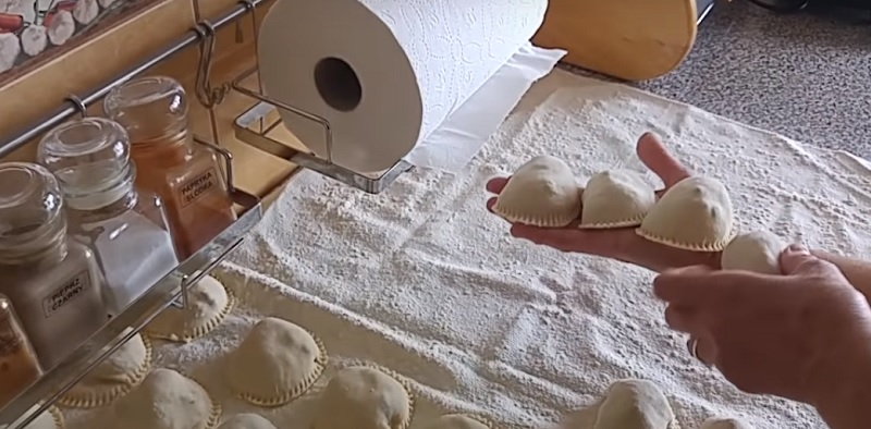 Okrągłą szklanką lub specjalną formą wyciąć pierogi. Końce pierogów można docisnąć np. widelcem. Tej samej metody można użyć przy gotowaniu uszek do barszczu. Jest ona prosta i pozwala zaoszczędzić wiele czasu.