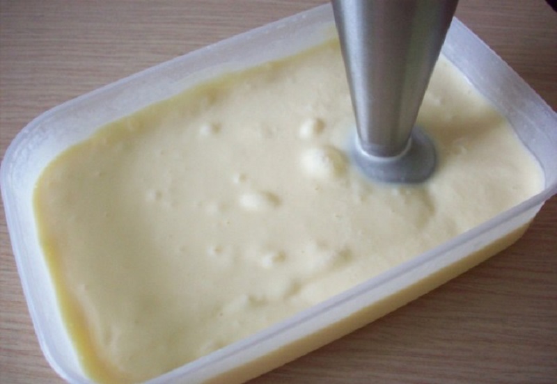 Umieść całość na niewielkim ogniu i podgrzewaj, ciągle mieszając. Rób to, dopóki mleko nie zgęstnieje i nie osiągnie konsystencji mleka kondensowanego. Odstaw. W mikserze ubij śmietanę, wymieszaj za schłodzonym mlekiem. Włóż całość do zamrażarki. Po godzinie wyjmij pojemnik i ponownie zmiksuj lody. Dzięki temu będą puszyste i bez grudek lodu.