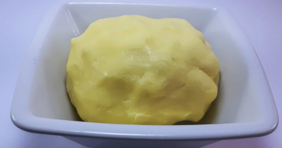 Na dnie będzie znajdować się także odrobina płynu, nazywanego maślanką. Jedyne, co nam pozostaje, to przeniesienie gotowej bryłki do ściereczki i szybkie przemycie jej pod zimną wodą.