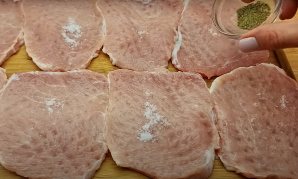 Obierz ziemniaki, a następnie zetrzyj je na tarce o dużych oczkach. Umieść je w misce z zimną wodą. Polędwicę pokroić w cienkie plastry. Następnie rozbić je tłuczkiem. Doprawić solą i pieprzem.