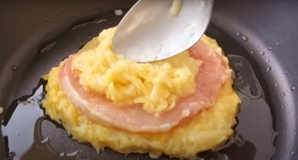 Na koniec połóż ziemniaki na wierzchu. Smażyć z obu stron przez około 2 minuty.
