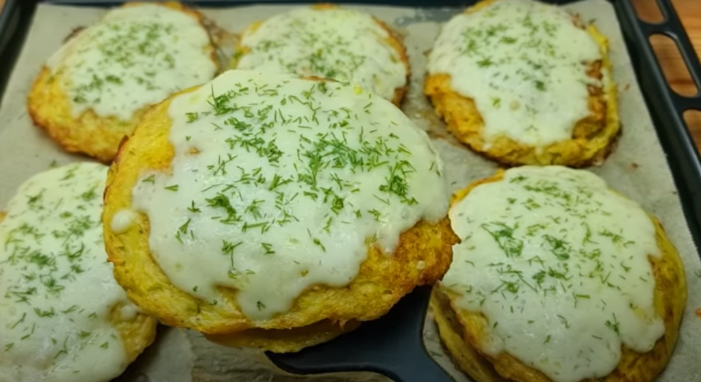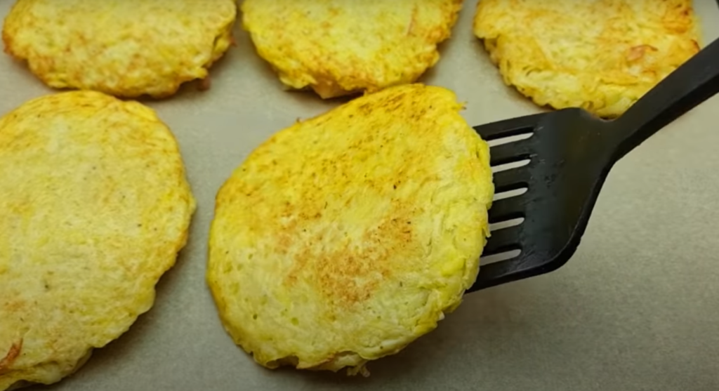 Aby odsączyć nadmiar tłuszczu, ułóż placki na papierowych ręcznikach. Naleśniki ułożyć na blasze wyłożonej papierem do pieczenia. Piec naleśniki przez 20-25 minut w temperaturze 180C.