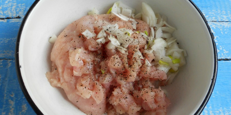 Pokrój cebulę. Dodaj ją do wołowiny. Następnie dodaj jedno jajko, cebulę, pieprz i sól i dokładnie wymieszaj.