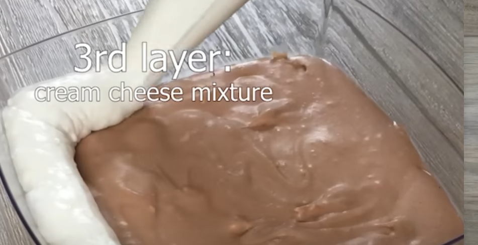 Pierwsza Warstwa : Na warstwę herbatników nałóż warstwę mieszanki z czekoladą. Zamroź na 15-20 minut.