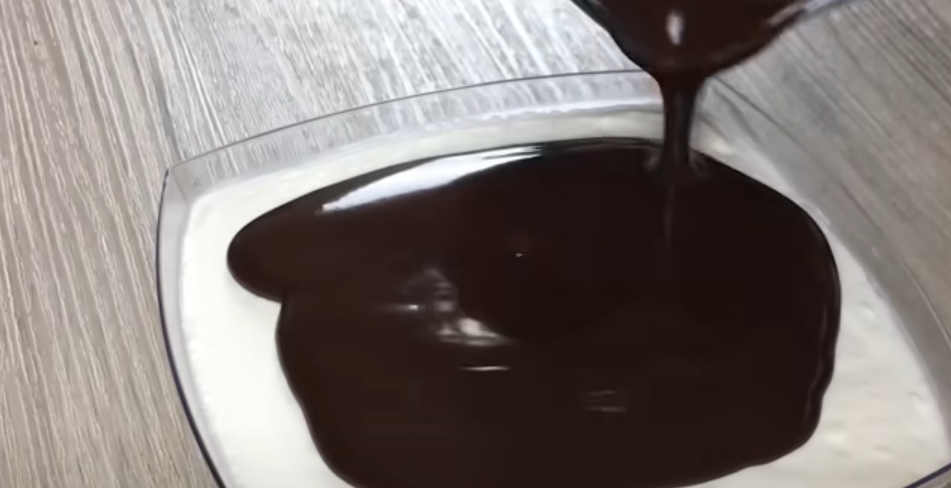 Dzielenie mieszanki: Podziel miksturę na dwie części. Do jednej części dodaj roztopioną czekoladę i mieszaj, aż dobrze się połączy. Umieść tę mieszankę w rękawie cukierniczym