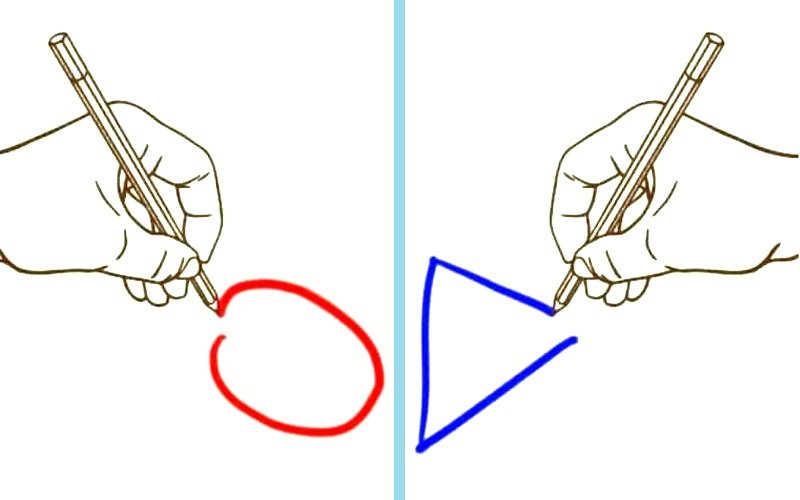 Przygotuj dwie kartki papieru. Przygotuj dwa ołówki lub długopisy. Rozpocznijcie ćwiczenie trzymając w każdej ręce przygotowany przyrząd do pisania. Jedną ręką możesz namalować koło, a drugą trójkąt. Możesz też wybrać różne kształty, litery lub całe słowa.