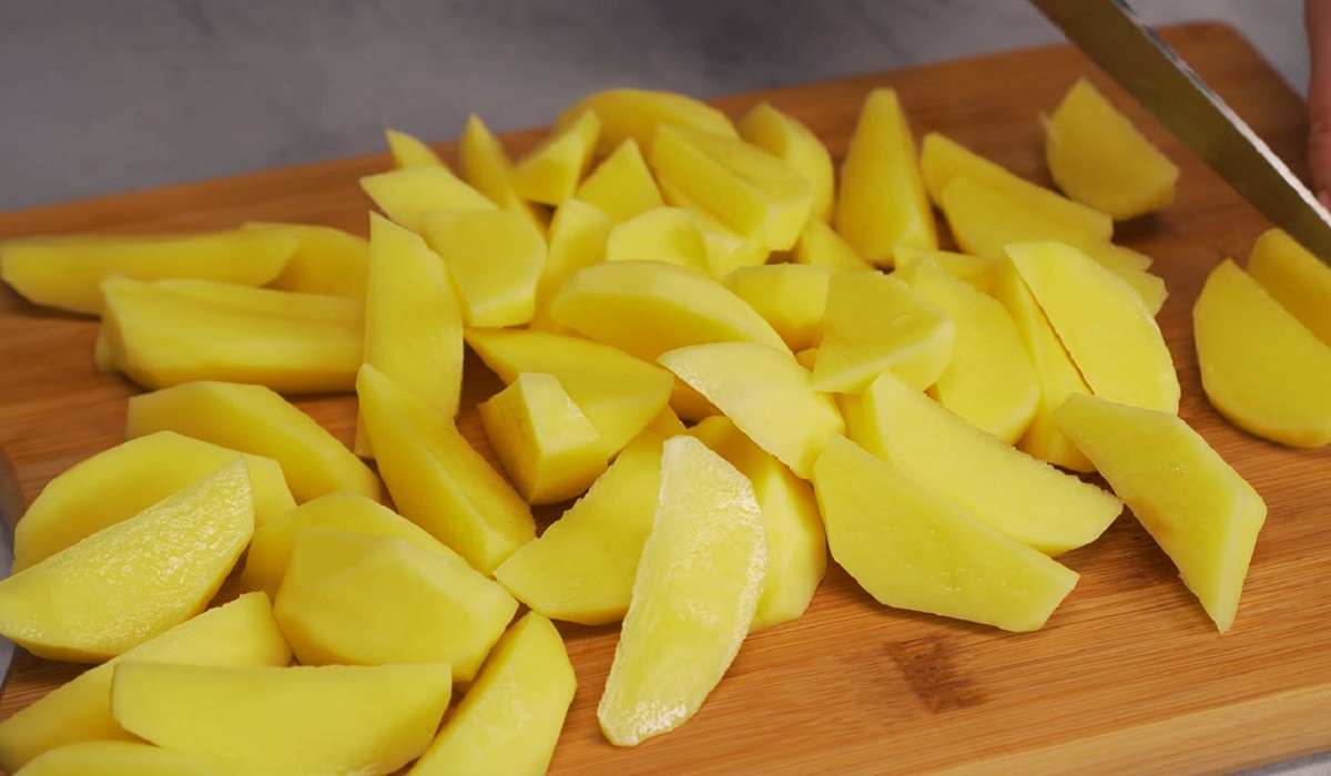 Ziemniaki można obrać i pokroić w kostkę. Gdy będą już miękkie, gotuj je przez 15 minut w wodzie.
