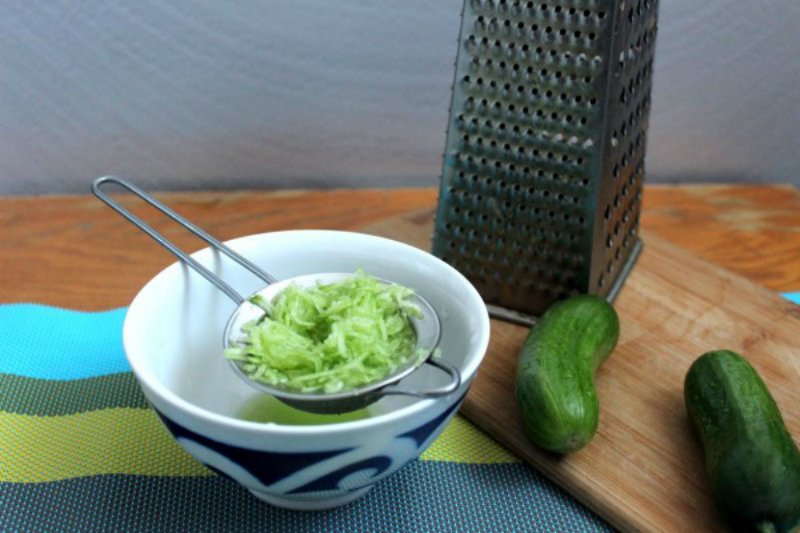 Na początku zetrzyj połowę świeżego ogórka (wcześniej schłodzonego) na tarce o małych otworach. Wyciśnij sok do niewielkiego kubka i nałóż miąższ z ogórka, obfitą warstwą na powieki. Trzymaj na powiekach przez 20 minut.