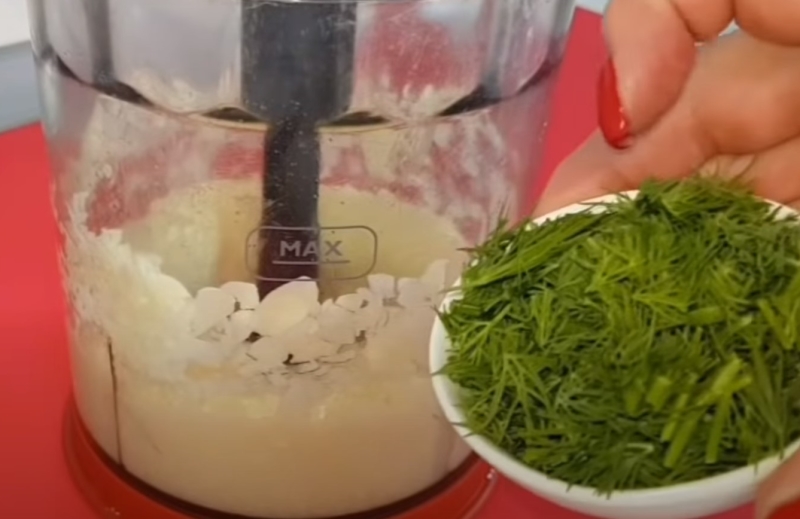 Przygotowanie jest bardzo podobna do standardowej wersji pasty. Różnica jest taka, że w momencie mieszania czosnku dodajemy koper i ubijamy do jednolitej masy. Cała reszta przepisu jest identyczna i wykonuje się go dokładnie w ten sam sposób.