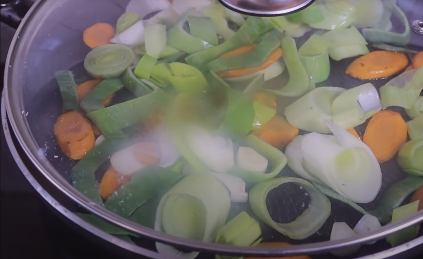 Dodać por i dusić na wolnym ogniu przez 5 minut.