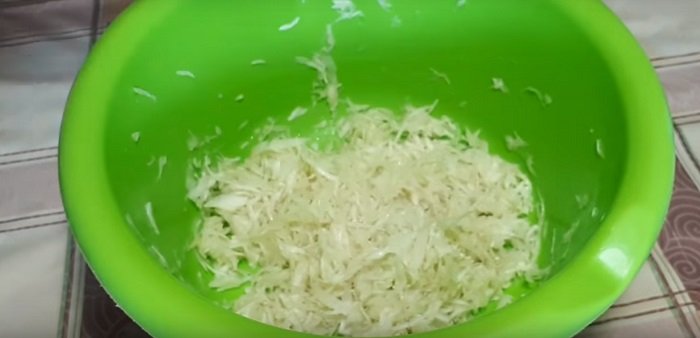 Kapustę drobno szatkujemy i przekładamy do miski. Dodajemy do niej startą na grubych oczkach cebulę – oba składniki mieszamy.