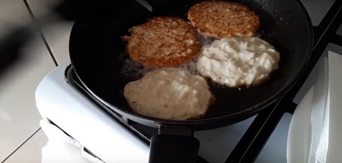 Po tym czasie, na patelni rozgrzewamy olej i przy pomocy łyżki formujemy placuszki – takie jak dobrze nam znane placki ziemniaczane. Smażymy z obu stron na złoty kolor.