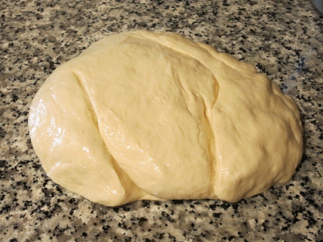 Rozmieszaj wodę z cukrem i drożdżami. Odstaw na około 10 minut, później wymieszaj z kefirem, olejem słonecznikowym, przestudzonym masłem oraz solą. Dokładnie wymieszane składniki połącz z mąką i zagnieć ciasto. Przykryj szczelnie pojemnik z gotowym ciastem, odstaw je na około godzinę w ciepłe miejsce.