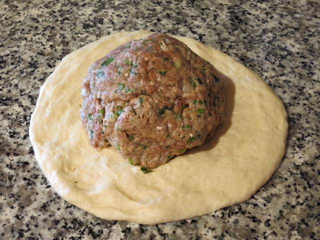 Dodaj je do mięsa, wymieszaj starannie i przypraw solą, pieprzem oraz papryką. Na koniec dolej do farszu odrobinę wody lub bulionu, jeszcze raz dokładnie zamieszaj. Umieść ciasto na natartej tłuszczem powierzchni roboczej, podziel je na 3 równe części i rękami uformuj z każdej z nich okrągły placek.