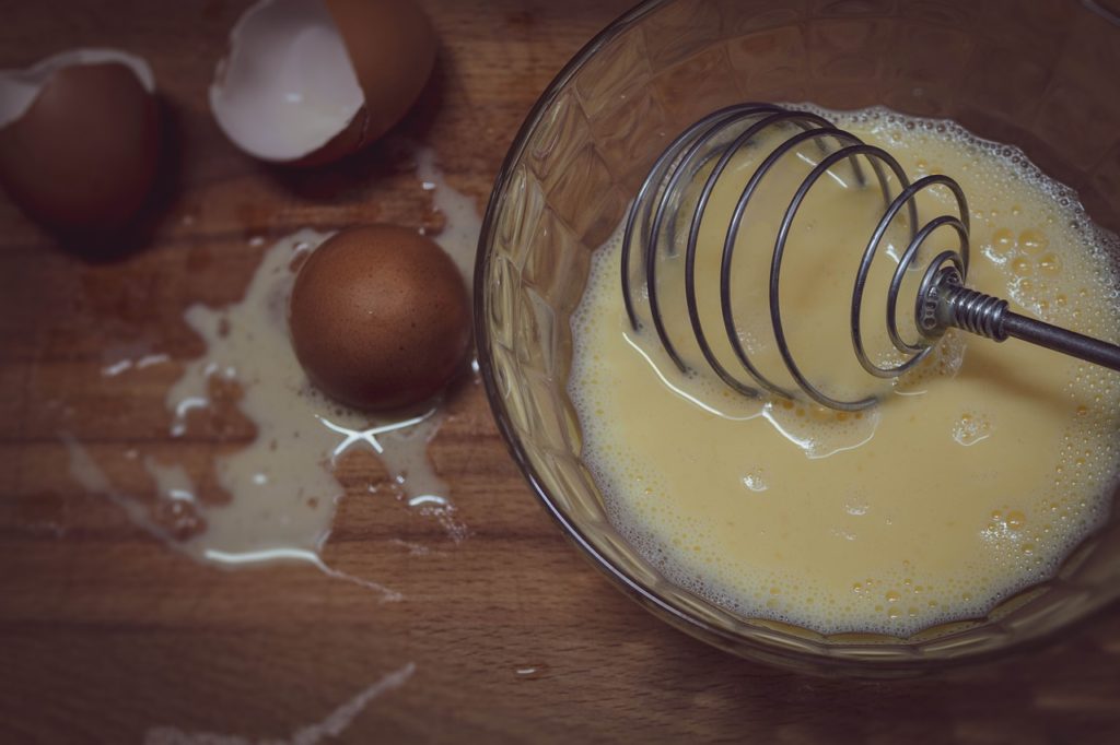 Jajka rozbijamy do miski i ubijamy razem z cukrem i cukrem waniliowym.