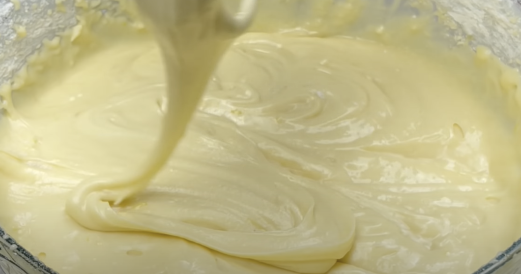 Ubijaj mikserem na wysokich obrotach, aż utworzy się gęsta biała piana. Skrop mlekiem, dodaj zmiękczone masło i ubij.