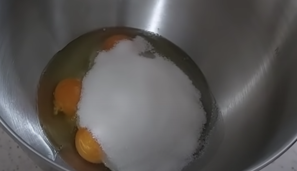 Jajka rozbijamy do miski i ubijamy razem z cukrem i cukrem waniliowym.
