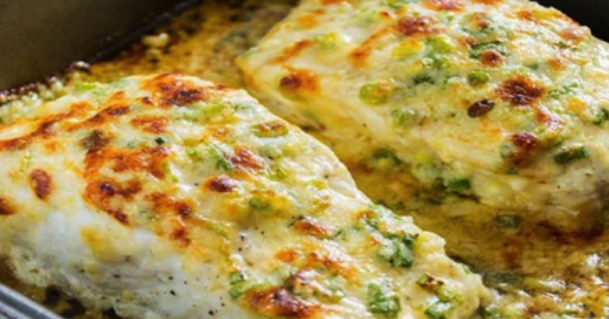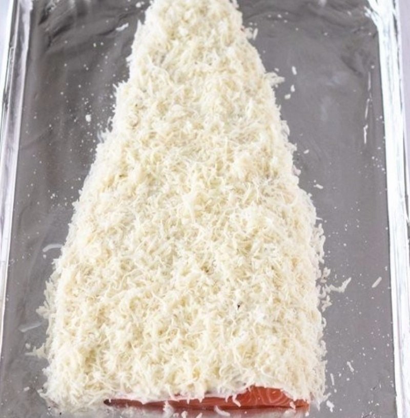 Rozgrzać piekarnik na 200 stopni i piec rybę w takiej temperaturze przez 15 minut (może być termoobieg). Następnie zmień tryb piekarnika na grillowanie, aby skorupka od sera nabrała złocistego koloru.