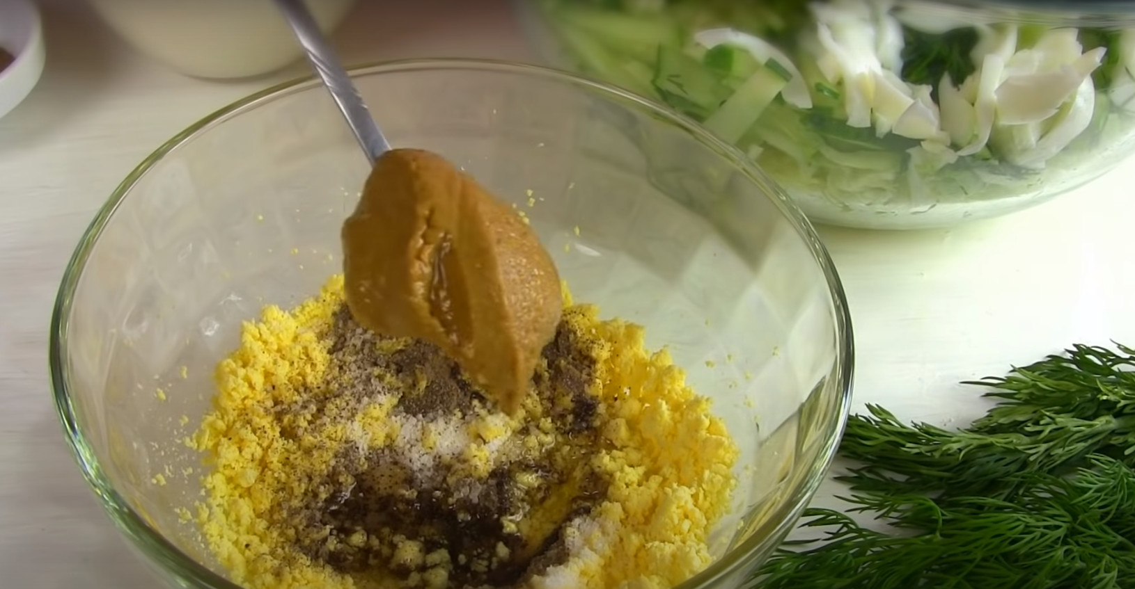 Wszystkie owoce i warzywa dokładnie umyj. Ogórka pokrój w talarki, a następnie pokrój w paski. Poszatkuj kapustę. Pokrojone składniki wsyp do miski. Z jabłka pozbądź się skórki, następnie pokrój i polej sokiem wyciśniętym z cytryny. Do miski wsyp pozostałe składniki, jogurt, przyprawy i sól. Na koniec wsyp kukurydzę. Całość wymieszaj i sałatka gotowa.