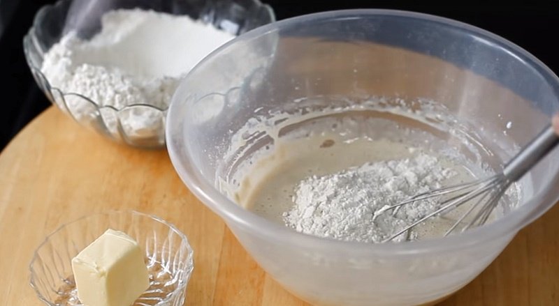 Podgrzej mleko i wymieszaj je z drożdżami, łyżką cukru i dwiema łyżkami mąki. Po dokładnym połączeniu składników odstaw je na kilka minut. Do miski wbij jedno jajko i ubij je za pomocą trzepaczki.
