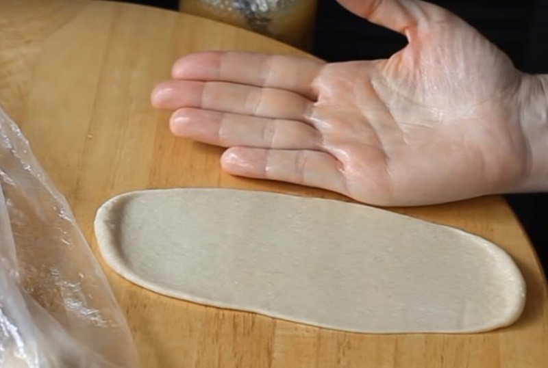 Przygotowane ciasto podziel na 12 równych części i uformuj je w kształt kulek. Przygotowane ciasto przykryj czystą ściereczką i odstaw na około 10 minut. Weź przygotowane kulki i po kolei je rozwałkuj. Ciasto powinno mieć podłużny kształt mniej więcej na długość dłoni.