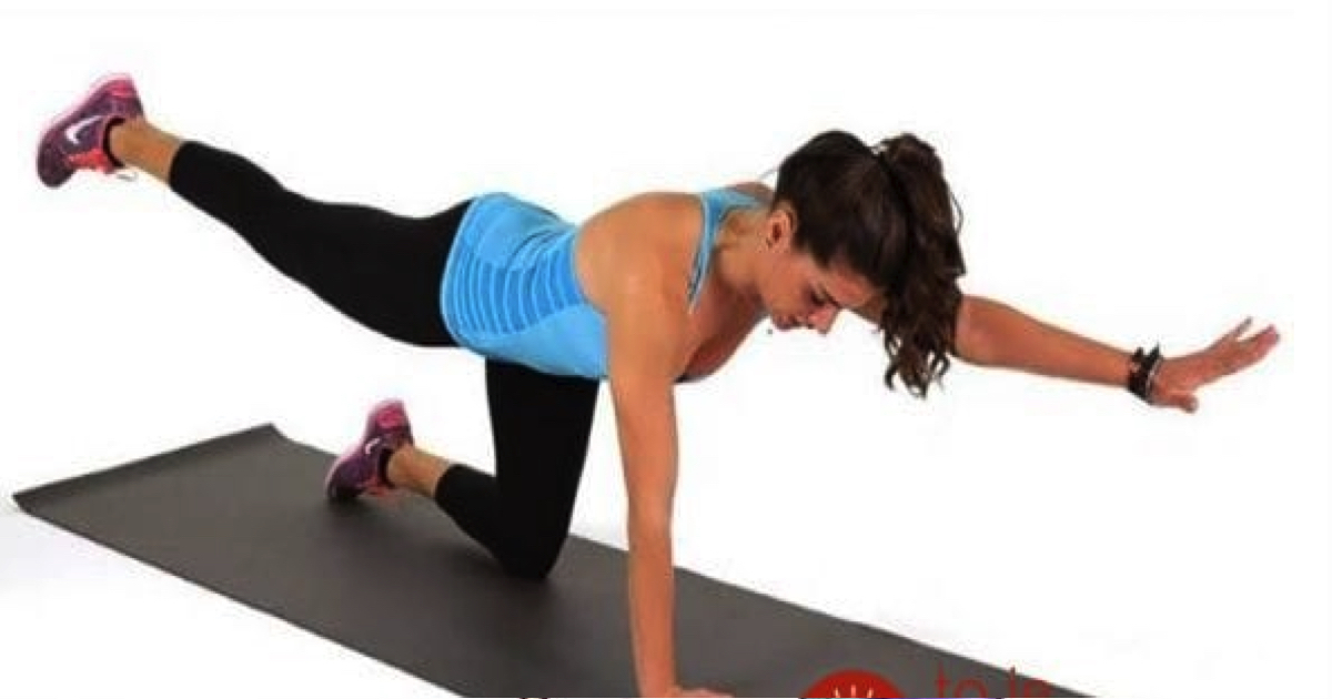 2. Uklęknij i podeprzyj się dłońmi i podłogę, unieś jednocześnie lewą rękę i prawą nogę i odwrotnie. Powtórz ćwiczenie po kilka razy na każdą stronę.