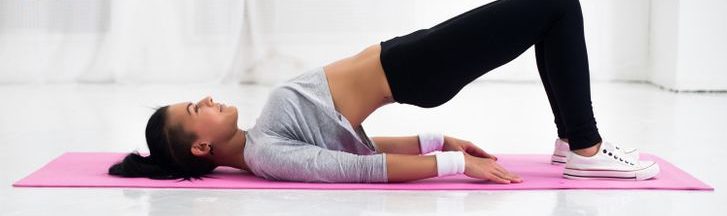 Ćwiczenie to wzmacnia nogi i brzuch. Umieść stopy poniżej kolan na podłożu i połóż się na plecach. Połóż ręce po bokach.