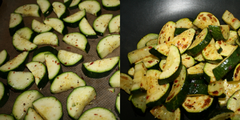 Zacznij od wymieszania w misce oleju z ziołami i przyprawami. Cukinię pokrój w pół-talarki. Do woreczka przełóż przygotowaną wcześniej marynatę, dorzuć cukinię i energicznie potrząśnij. Cukinia w całości powinna zostać pokryta przez przyprawy. Tak przygotowaną cukinię umieść na blaszce i piecz około 15 minut w 200 stopniach.