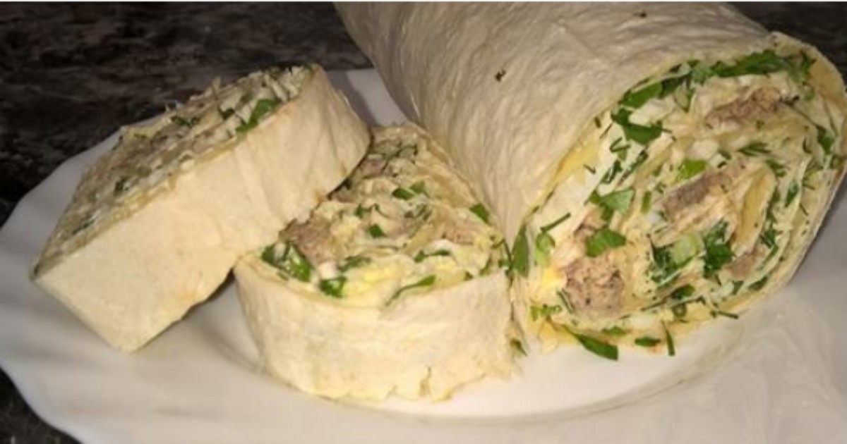 Tak przygotowane placki zwiń w roladę. Lekko przy zwijaniu ściśnij, aby była zwarta. Około 4 godziny trzeba schłodzić ją w lodówce. Po tym czasie możesz już rolkę rybną pokroić na plasterki i podawać jako przekąska na zimno.