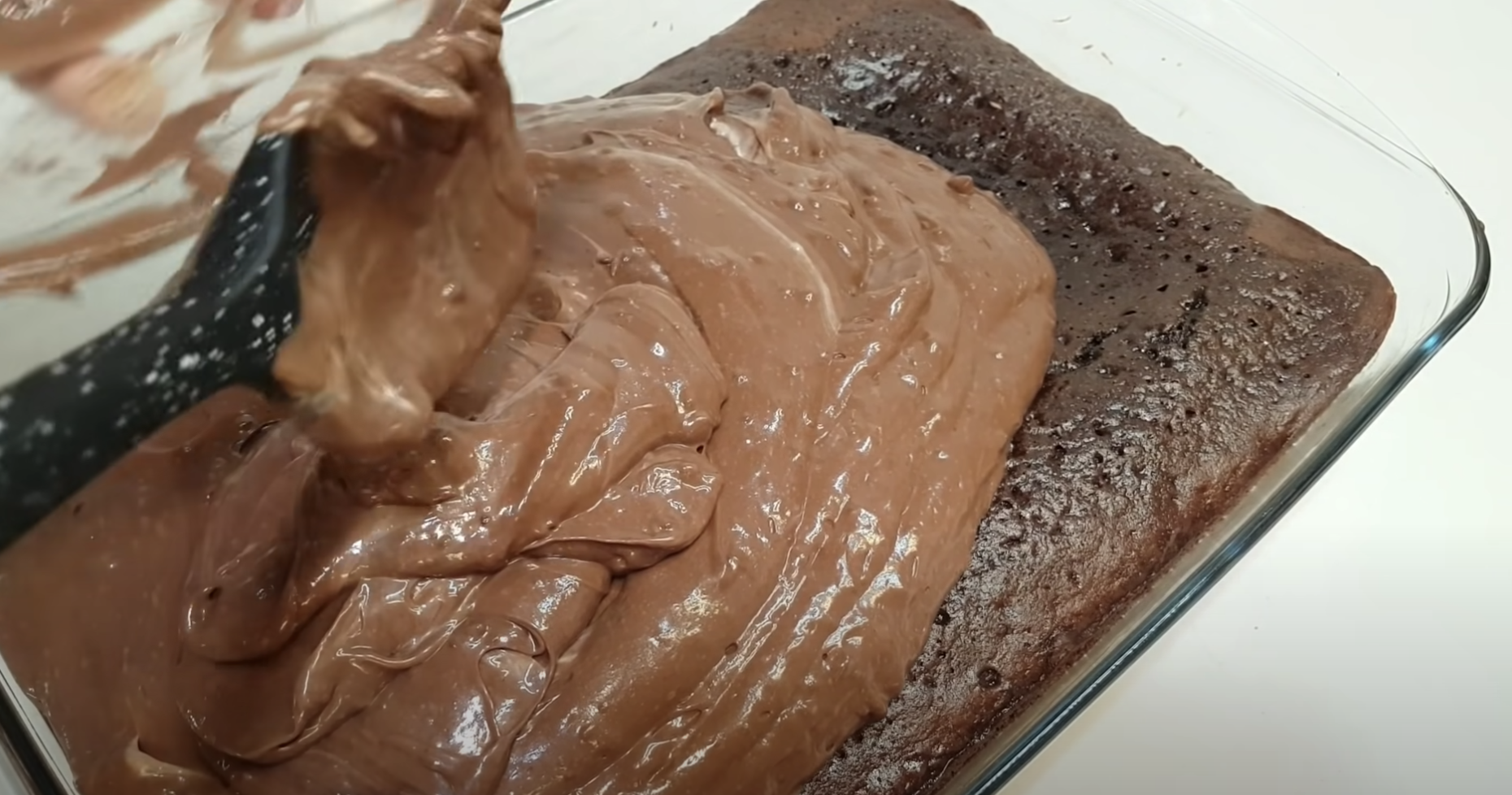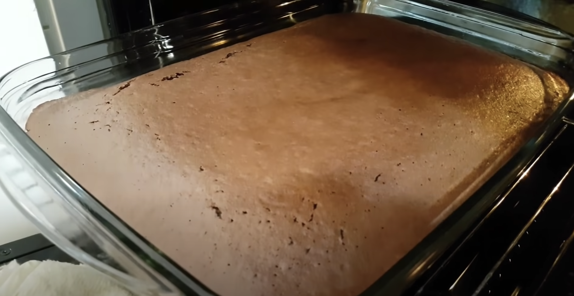 Ciasto wylewamy do natłuszczonej i wyłożonej papierem do pieczenia formy o wymiarach 30×40 cm. Ciasto pieczemy przez 30 minut w piekarniku nagrzanym do 180 stopni. Po upieczeniu posmaruj wierzch ciasta ulubionym dżemem.
