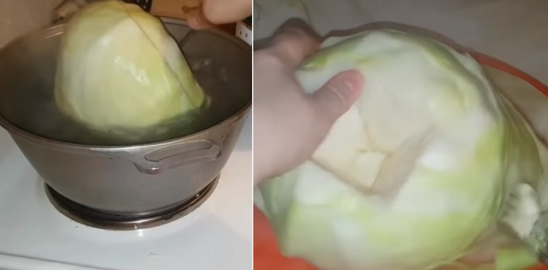 Liście kapusty przygotowuje się jak do standardowych, popularnych gołąbków. Kiedy gotuje się ona w wodzie, należy oddzielać z niej liście.