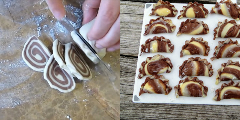 Możesz uzyskać dwukolorowe ciasto i sprawić, że twoje pierogi będą wyglądać obłędnie. Wystarczy, że jedną połowę ciasta wymieszasz z odrobiną kakao.