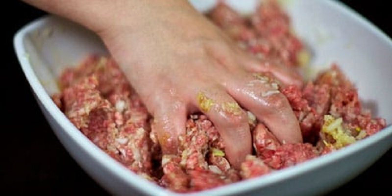 Kolejnego dnia zetrzyj i odsącz z soku cebulę. Dodaj do niej starty czosnek. Wyjmij mięso z lodówki i wymieszaj z wszystkimi składnikami. Dopraw pieprzem i solą.