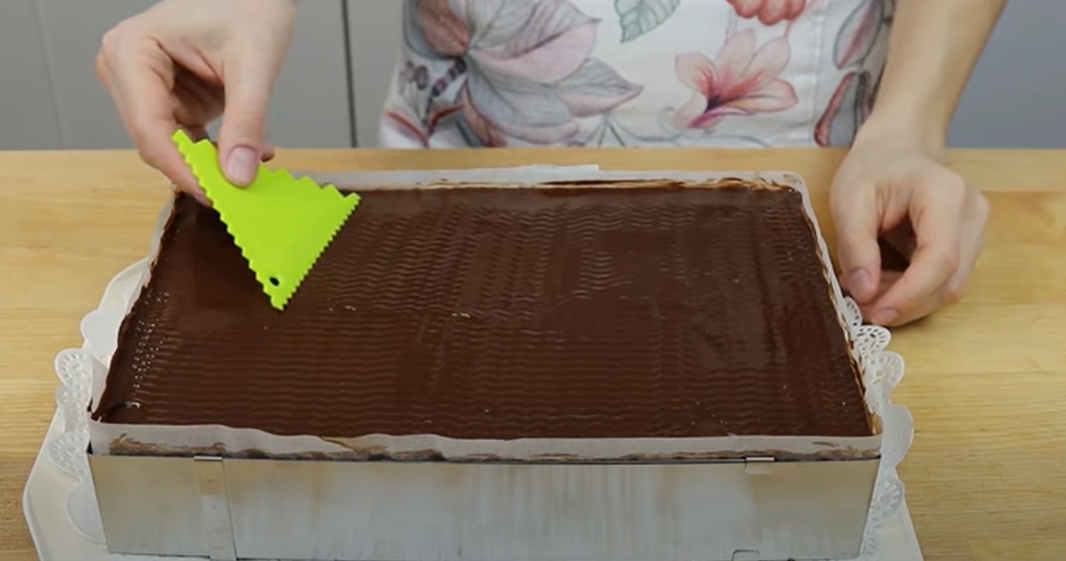 Rozprowadź równomiernie ciasto na torcie. Wierzch udekoruj np. za pomocą szpatułki, aby zrobić wgłębienie w cieście. Wstaw do lodówki na około 6 godzin. Ostatnia wskazówka: Przed pokrojeniem ciasta najlepiej namoczyć nóż w ciepłej wodzie.