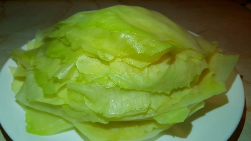 Na początku oderwij zewnętrzne liście główki kapusty, następnie całą główkę włóż do kuchenki mikrofalowej i nastaw na 10 minut na najniższą moc. Jeżeli nie masz mikrofalówki, możesz wyparzyć kapustę, gotując ją w dużym garnku z wodą przez 10 minut.